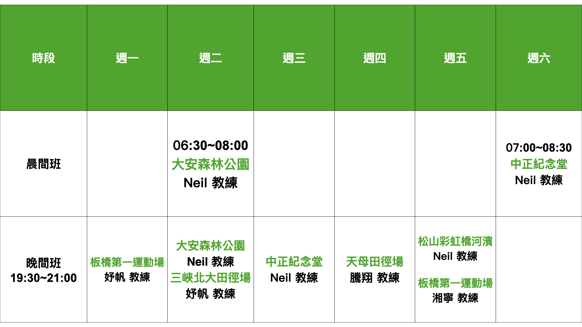 專業陣容再升級|全新教練,能量加倍 全新教練團熱情登場,帶來更多元的訓練風格與能量!透過他們專業、耐心的引導,以及更詳細的系統化課程,不只讓你安心起跑,更帶你穩定進步!