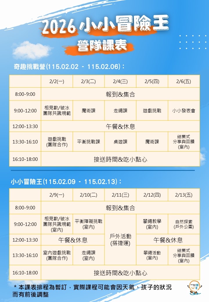 小小冒險王:2026/02/09(一) - 2026/02/13(五)