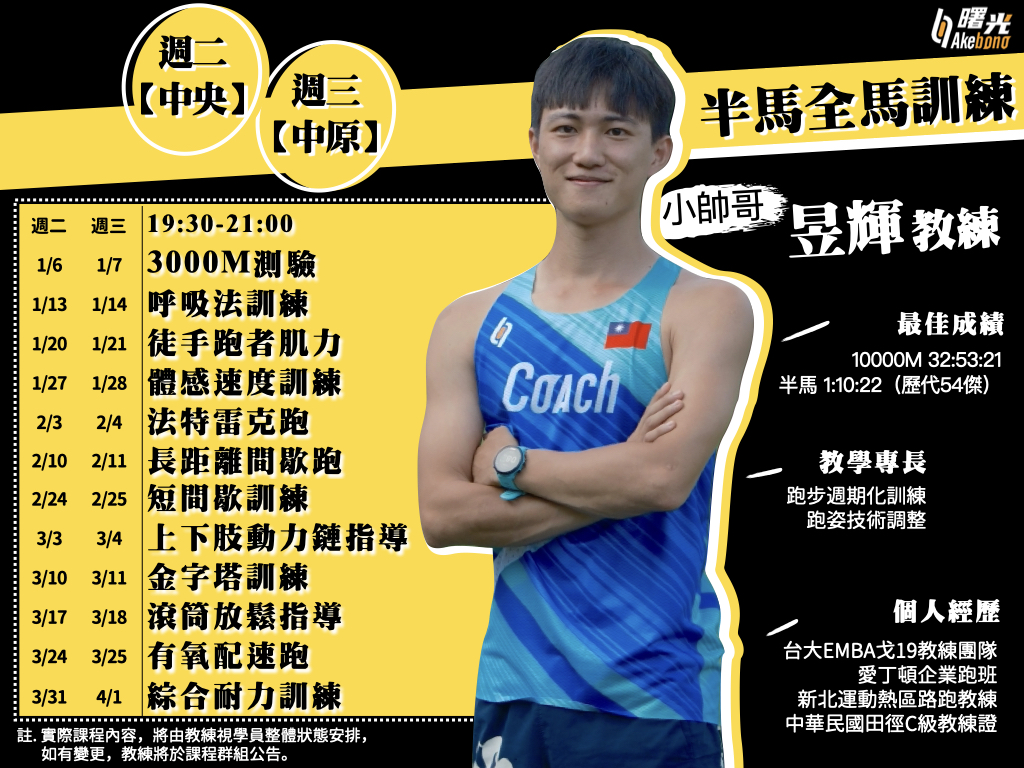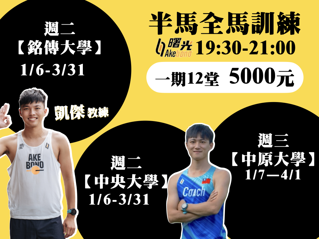 【Akebono曙光跑步學校 全馬半馬訓練系列】 想挑戰半馬、全馬賽事,你需要更強的有氧和肌耐力,並熟悉因應不同地勢、身體狀況來調整跑步方式,讓你能夠『調控長距離跑步的身體變化』、『跑得更遠更穩』!