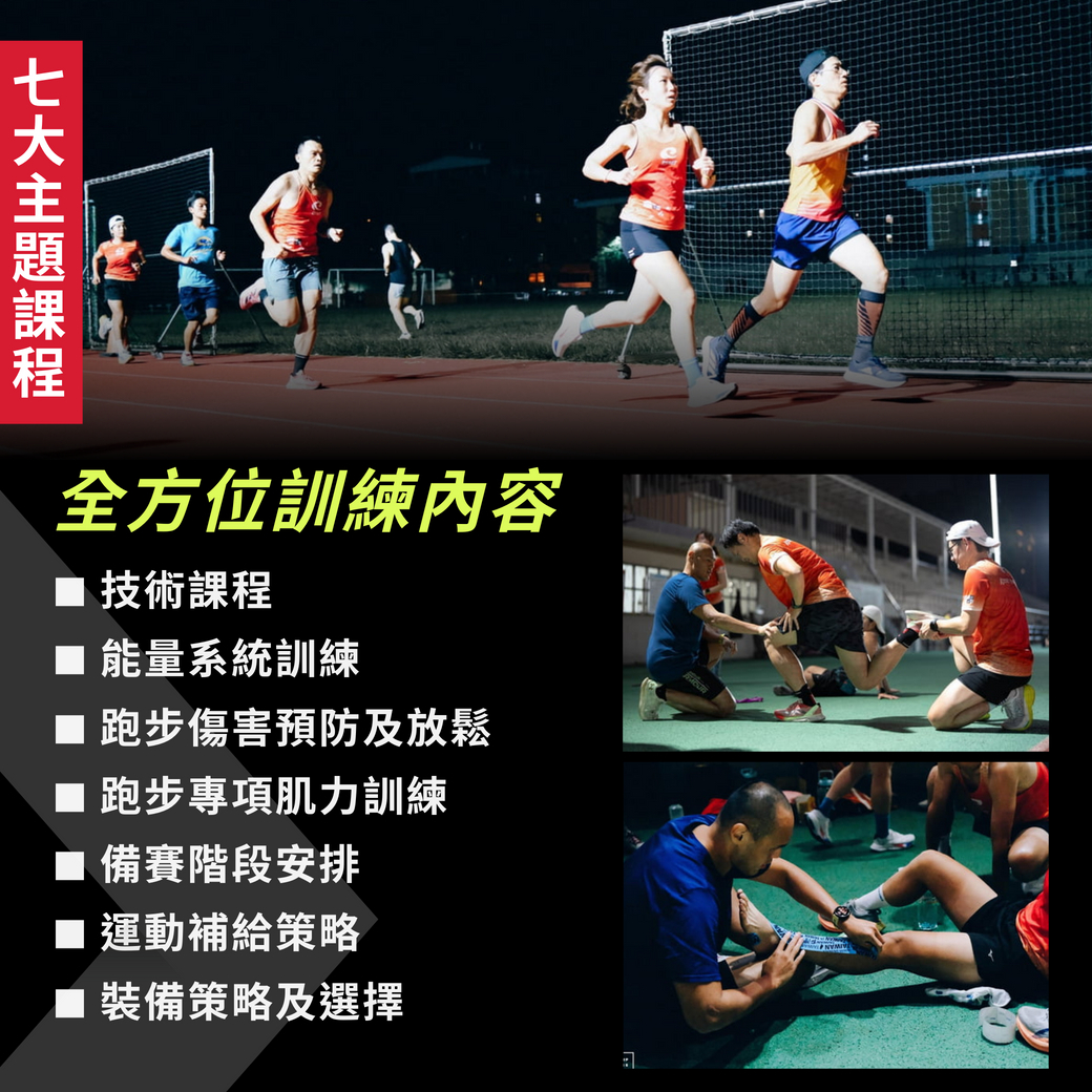 5. 本課程無傷停機制,運動具有潛在運動傷害之風險,在課程中,如遇運動傷害之學員,需主動通報教練團,教練團將依循專業醫生及治療師之建議,並於受傷期間的課程中,給予個別化恢復運動能力之訓練及建議。
