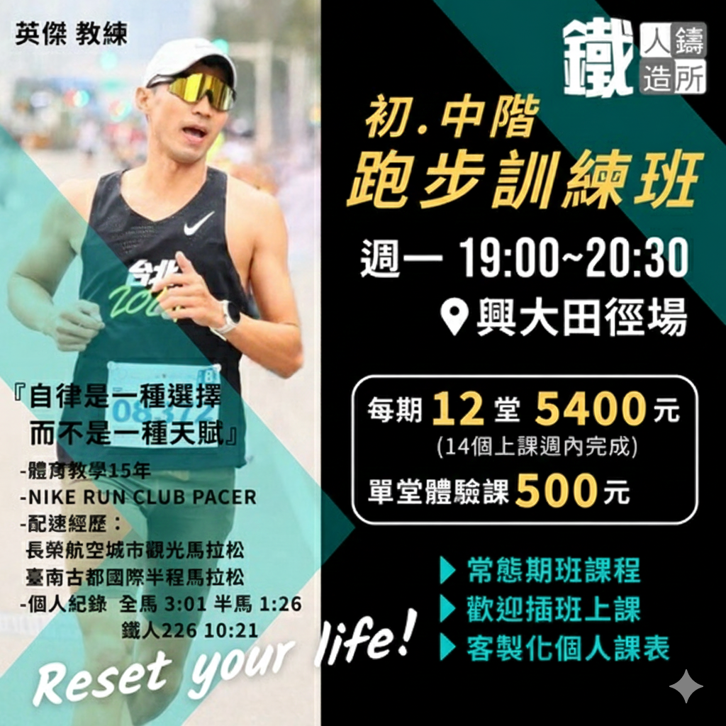 【鐵人鑄造所跑班】週一台中 英傑教練 初中階跑步專班