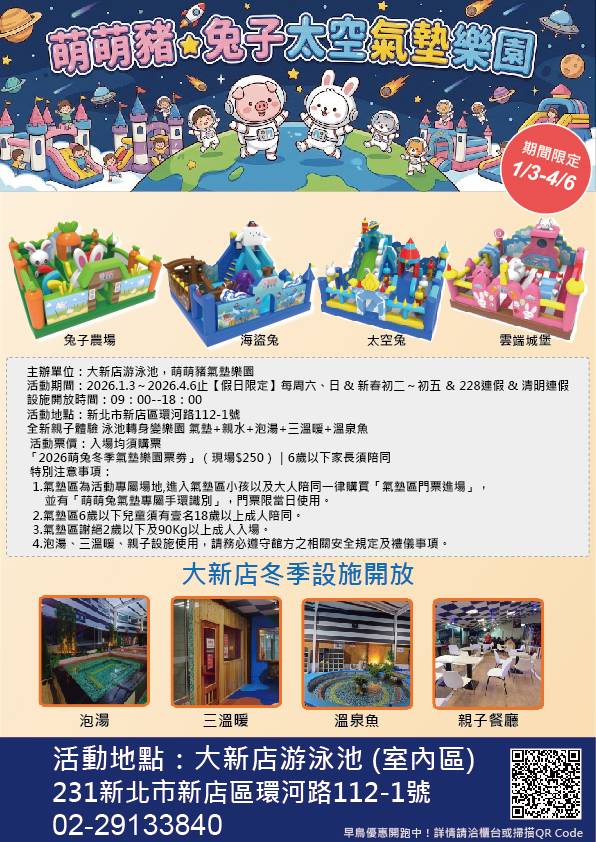 🐰主辦單位:大新店游泳池,萌萌豬氣墊樂園