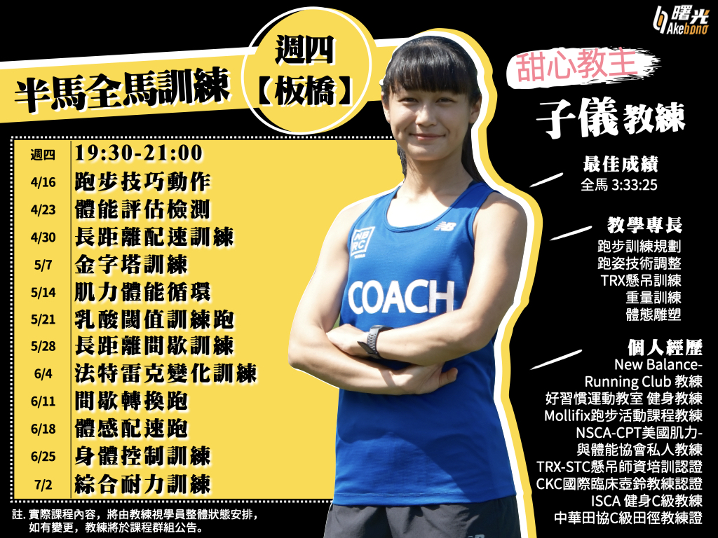課程目標:針對想挑戰全馬半馬賽事的跑者