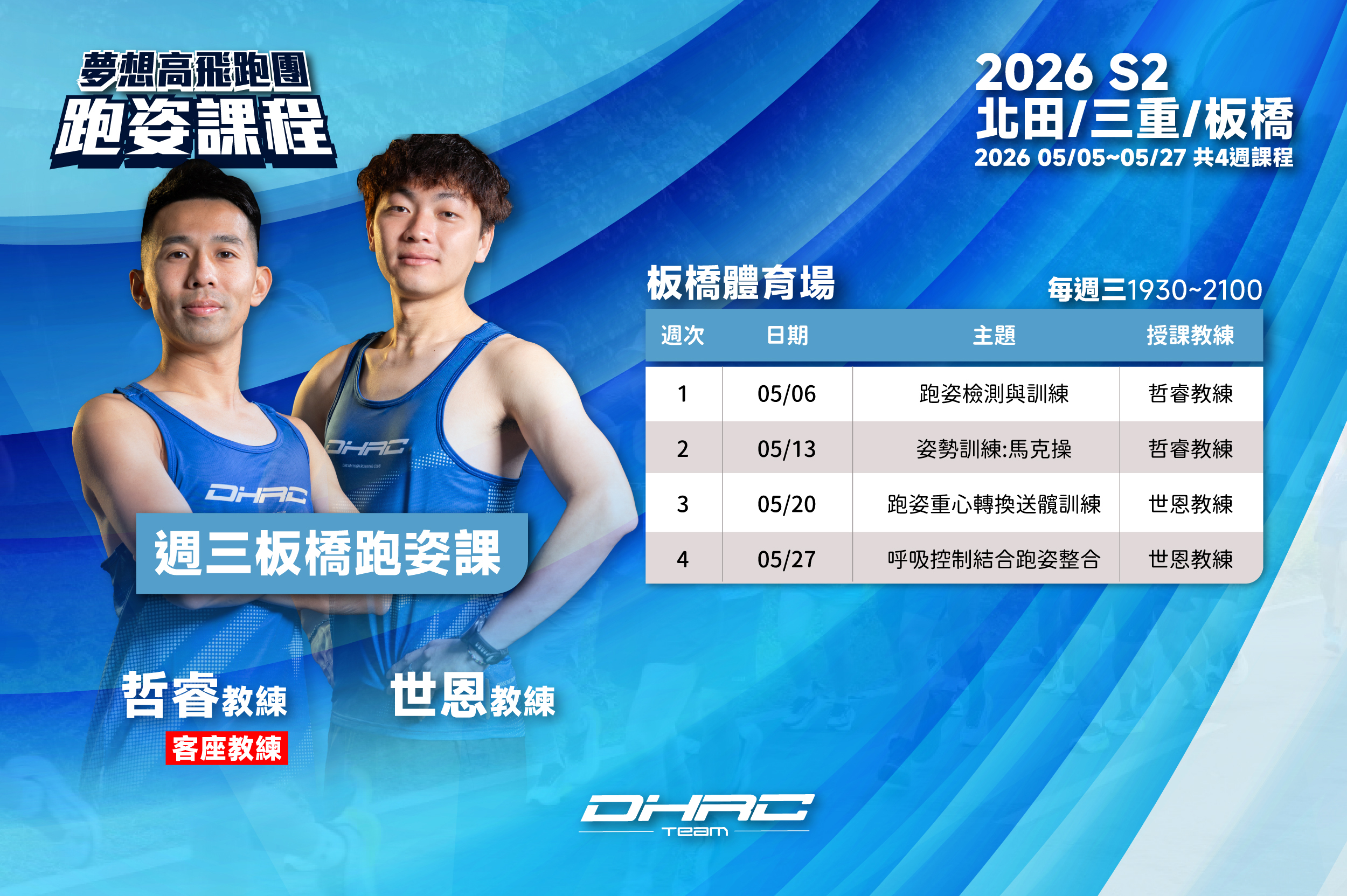 🏃主要教學教練:哲睿(2堂跑姿課)、洪世恩(2堂跑姿課)
