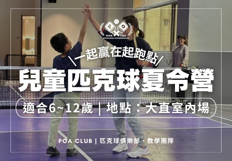【POA CLUB 兒童匹克球夏令營】 專為小一至小六設計,主打新手友善與興趣啟蒙!由豐富賽事經驗的年輕教練耐心指導。5日密集小班制,結合體適能、球感與趣味對抗。讓孩子在歡笑中愛上運動、掌握國際趨勢,讓孩子贏在起跑點!