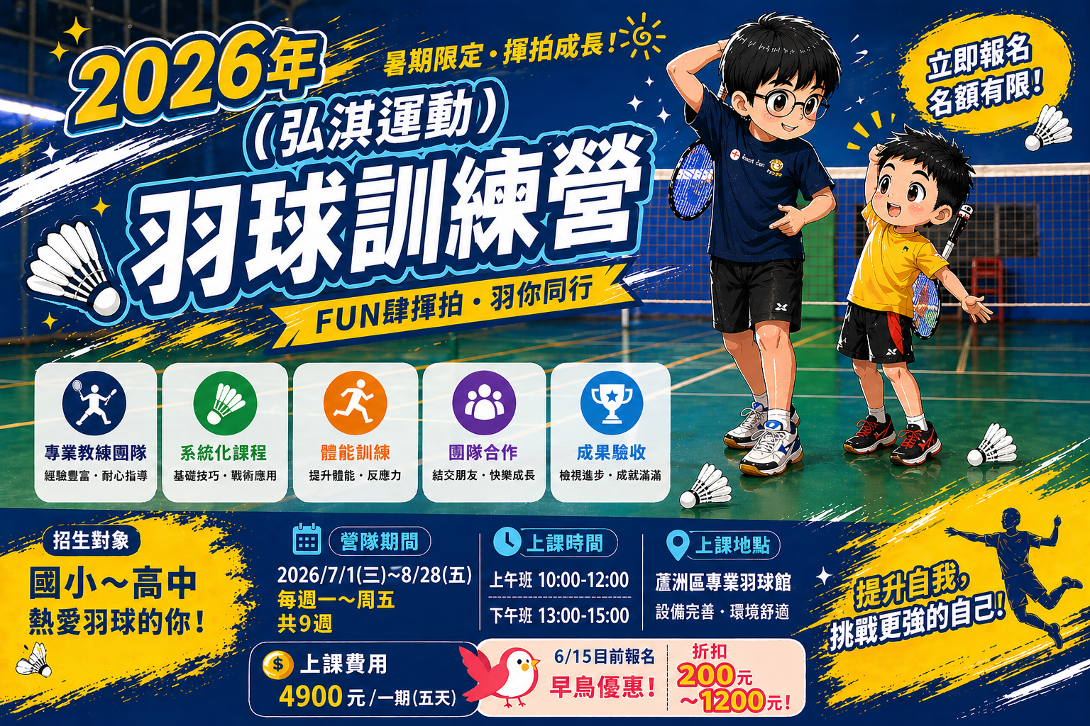課程為【弘淇羽球教學團隊】開設,場館僅提供場地租借,櫃檯人員無法提供課程相關協助。