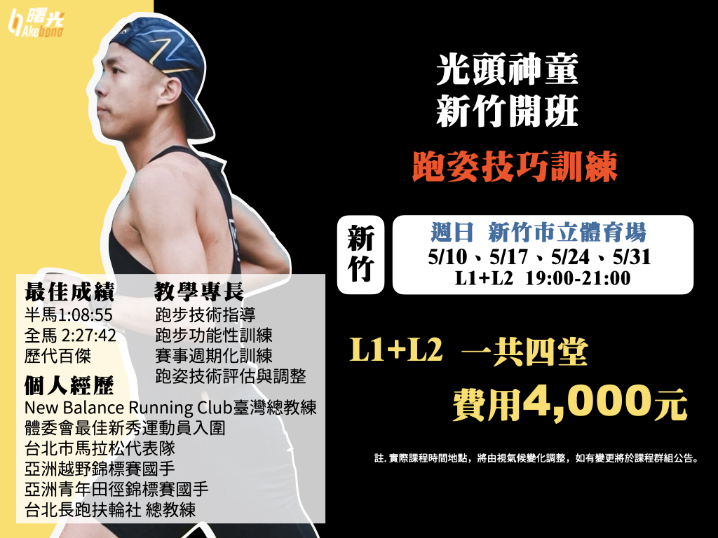 【Akebono曙光跑步學校】【新竹】跑姿技巧L1-L2課程介紹