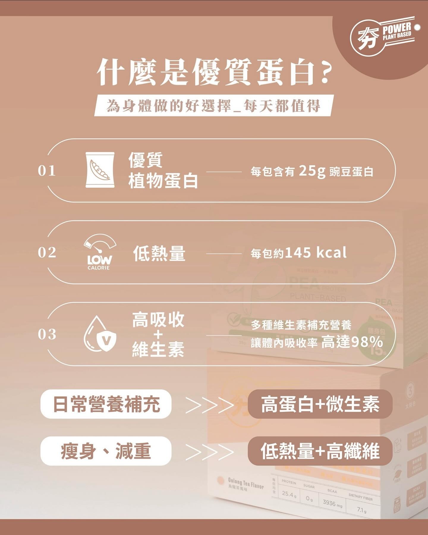 由台灣製造優質豌豆蛋白粉,針對台灣人的味蕾調配。
