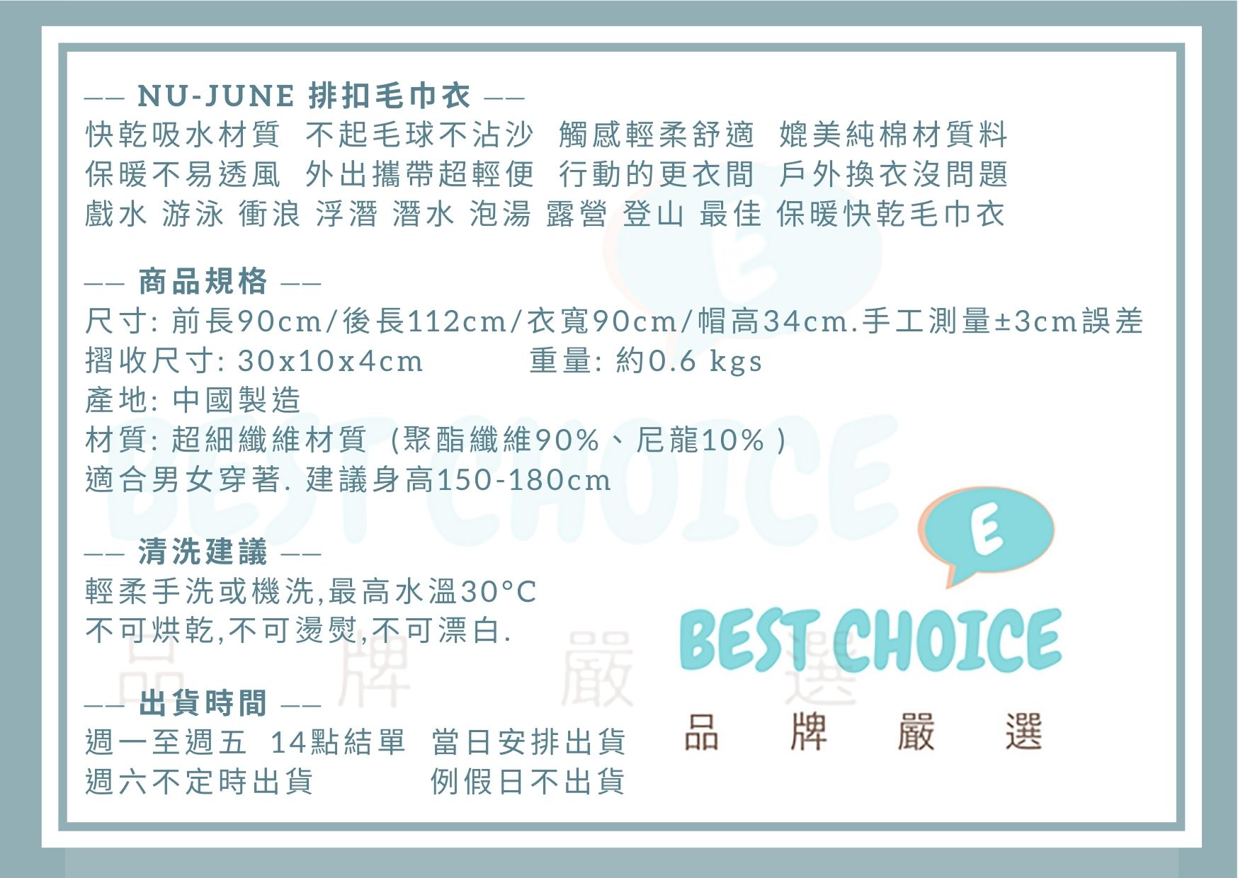 商品內容物:毛巾衣 商品材質:聚酯纖維 品牌:NU-JUNE