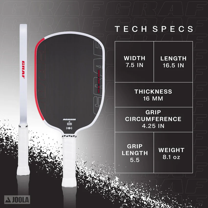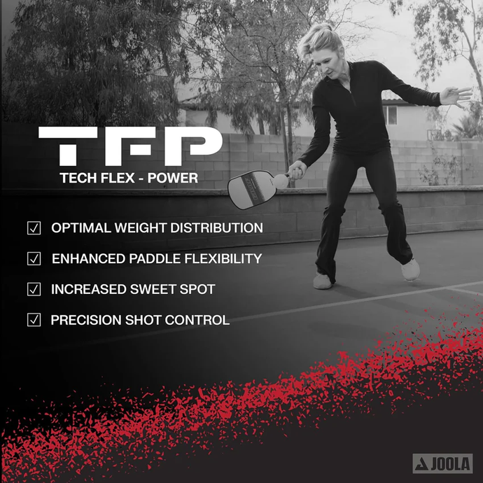 Graf Pro 專為高性能設計,擴展甜點區至球拍的上緣與底角,提升擊球的精準度與穩定的力量輸出。JOOLA 的 TechFlex Power (TFP) 技術優化了重量分佈,提供更好的控制與更高的容錯率。