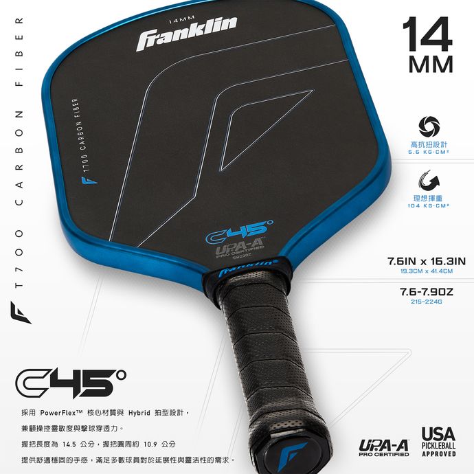 Franklin BY CARBON PADDLEC45 結合了多項先進科技,提供極致操控與強大力量的完美平衡。